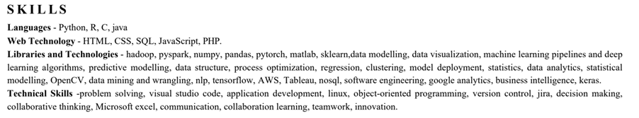 Khoảng 90% hồ sơ chúng tôi thấy có một danh sách dài các kỹ năng. Đây chỉ là một số ví dụ.