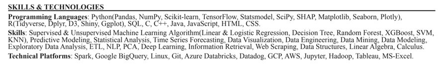 - Loại bỏ các kỹ năng phổ biến, ví dụ: git, sổ ghi chép, MS Word/Excel.