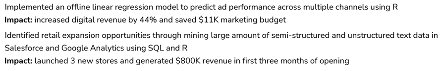 Mọi người đã nhanh chóng chỉ ra cho tôi: lời khuyên phổ biến nhất để viết CV là “định lượng tác động của bạn”, ví dụ: bạn đã tiết kiệm được bao nhiêu tiền cho công ty của mình, bạn đã thực hiện chương trình của mình nhanh hơn bao nhiêu. Do lời khuyên này, nhiều ứng viên đã nói với tôi rằng họ cần phải có các số liệu trong hồ sơ của mình. Đôi khi, khi không thể định lượng được tác động của mình, họ chấp nhận những gì họ có thể định lượng được.